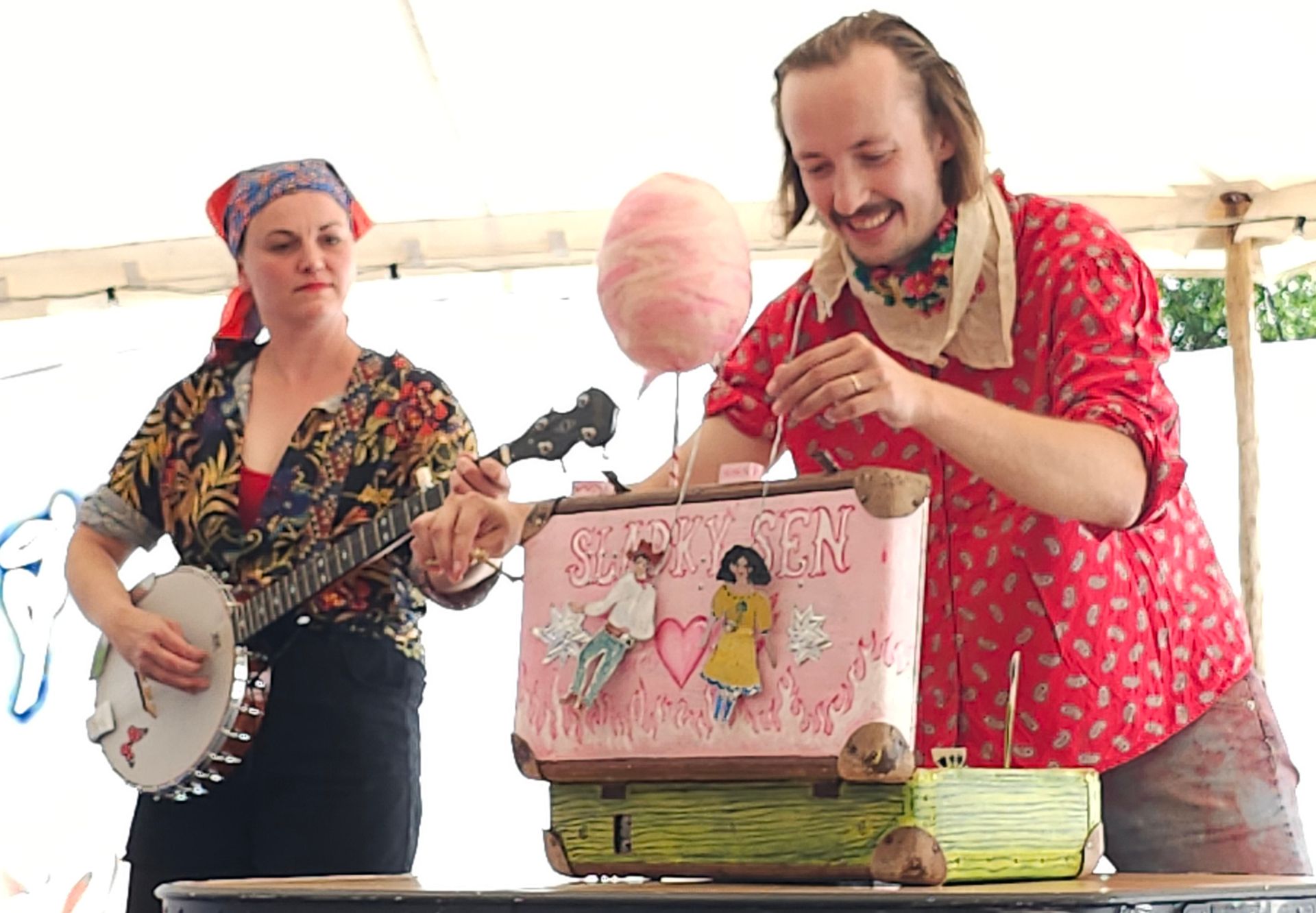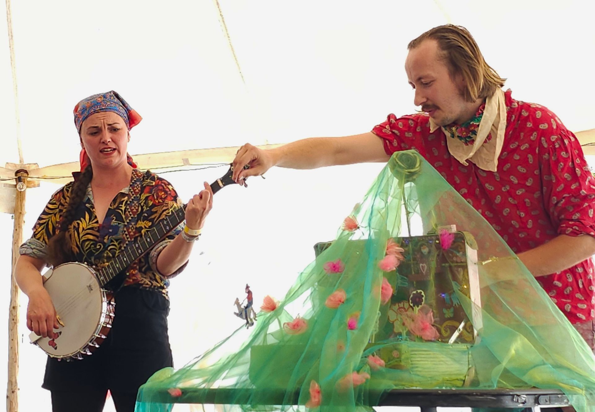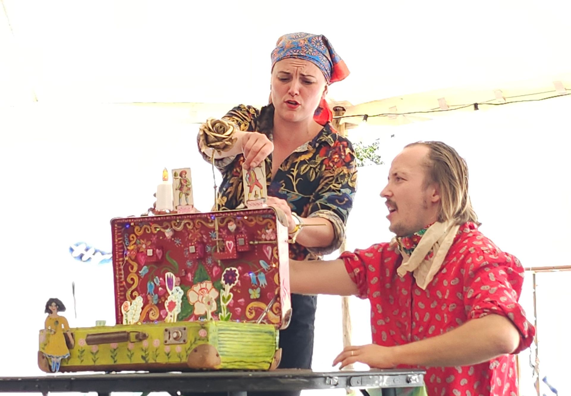 Ne tak úplně tradiční loutková pohádka z pouťového prostředí. Inscenace z kufříku, který ukrývá spoustu papírových růží, plechových plošných loutek, vůní, světýlek a balíčků karet. Pouťovo-kovbojská variace na Šípkovou Růženku, kde se spícím královstvím stává střelnice plná papírových růží!