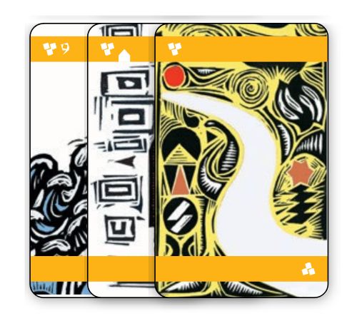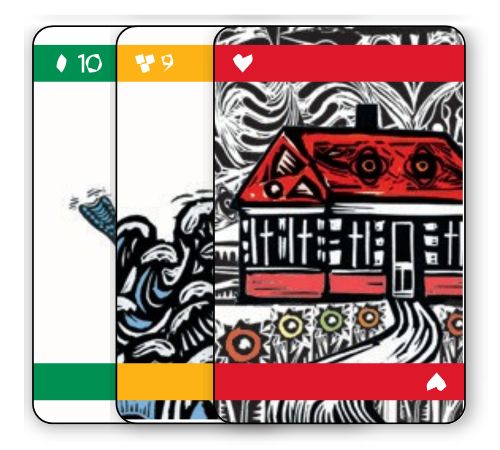 a ve čtyřech různých barvách červená, žlutá, modrá a zelená. Karty událostí hrajeme k jednotlivým milníkům v co nejhodnotnější kombinaci.