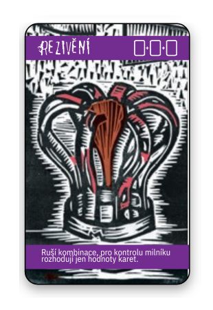 Karta Rezivění zruší všechny kombinace a o kontrole milníku se rozhoduje pouze na základě součtu síly karet na každé straně. Pozor, číselné karty mají sílu hodnoty karty (devítka má sílu devět) a dále spodek = síla 10, svršek = síla 20, král = síla 30 a eso = síla 40. Rezivění se nepočítá do 3 karet u milníku.