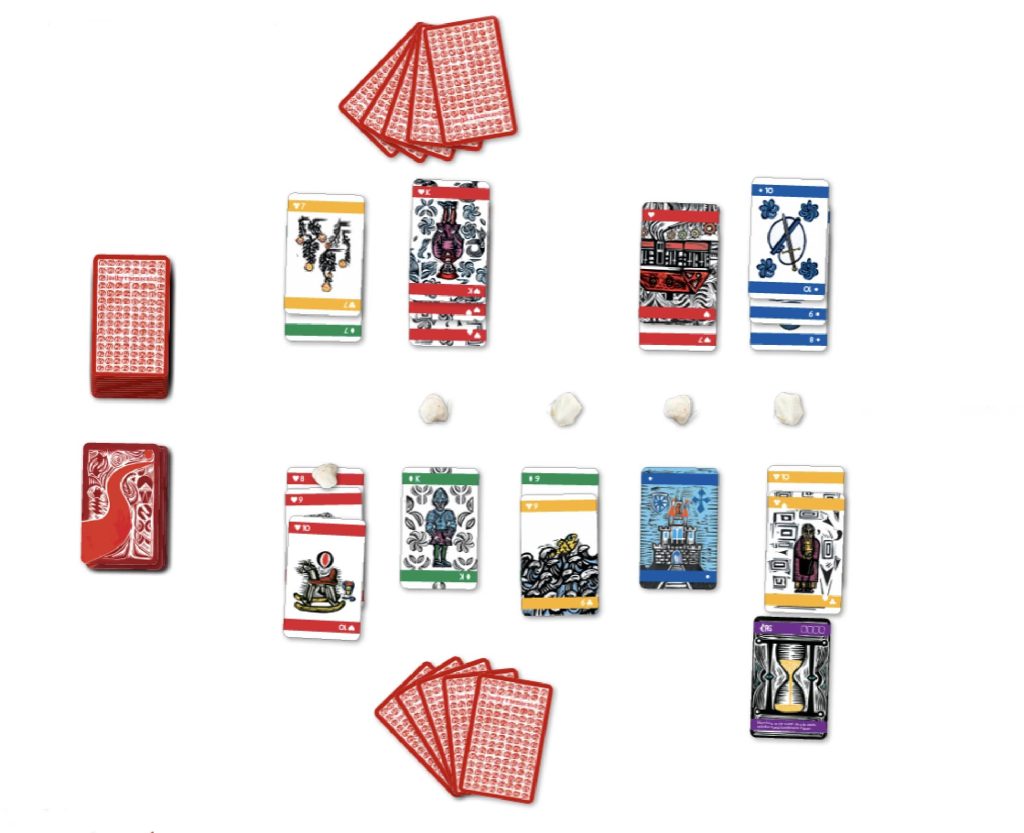 Aby hráči získali kontrolu nad milníkem s kartou Času, musí vytvořit kombinaci ze 4 karet.