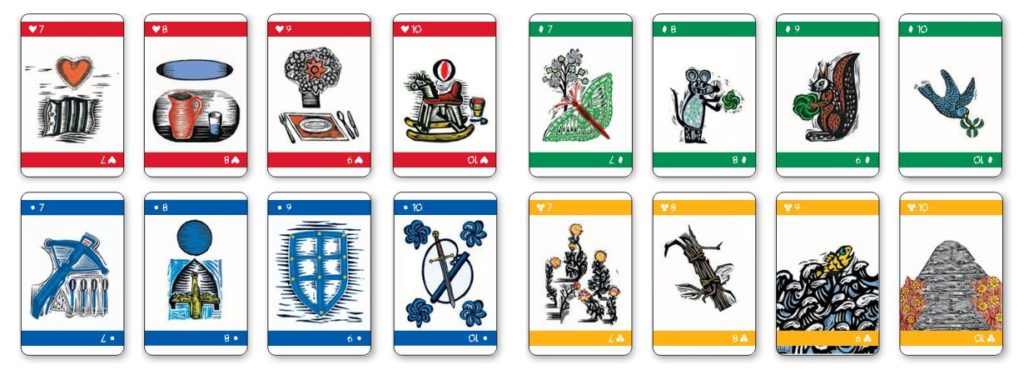hromádka obsahuje karty s vyznačenou hodnotou 7 až 10 všech barev