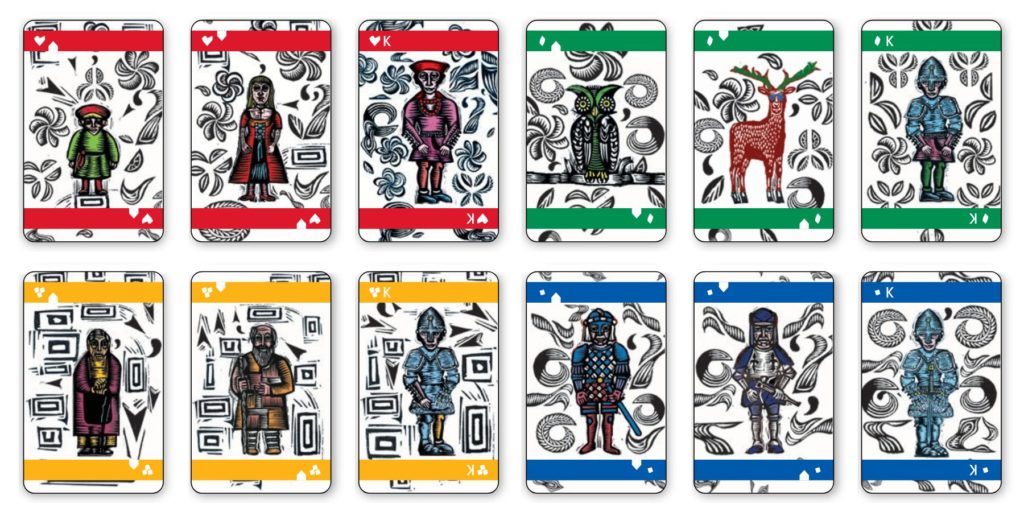 Hromádka obsahuje karty spodek, svršek, král a eso všech barev.